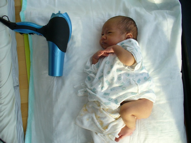 29日目 腸が発達中で便の出がいまいちなのかぐずってばかりです。 午前中の太陽の入るうちにお尻の乾燥が日課です。 オムツを外しているのでちょっとリスキーな瞬間 今日は大好きなドライヤーで落ち着いてました。 パパは日本へ出生届を出しに行ってくれました、戸籍登録完了まで2ヶ月待つみたいだけど、早く日本のパスポートが欲しいな。