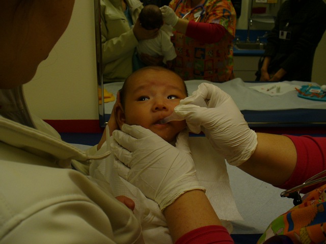 そしてママに手を押さえられて、看護婦さんがももにブス、ブス、ブスっと3本いきました。