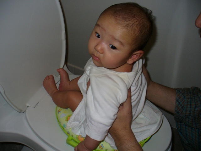 109日目 雪交じりの雨の予報でしたがおきた時はそんな雰囲気はありません。 朝は眠いのです。 ママと思ってるけど実は枕、変わり身の術。 さて、今日もおっぱいを飲んでと、そしたらママはいきなりトイレにつれていく。 昨日買ったプーさん便座に座らされた。 まぁいつもの嫌な感じにはならないからいいんだけど、タイミングは正直わからないです。 5回成功でオムツ5枚分?1ドル節約?
