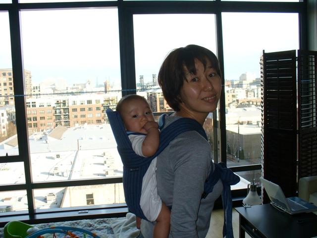新たなおんぶ紐が届いた、ママは北極白熊堂にやれている。