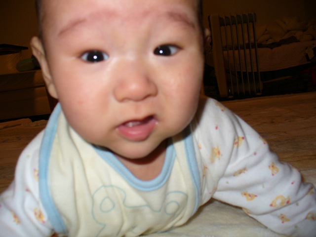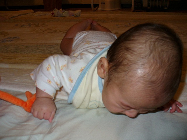 115日目 ダウンタウンは朝、雪が降ってました、でも積もらなかったです。 ママはお昼にヨガです、パパと遊ぶました、といってもママから見ればパパのすることはスパルタらしい。 パパは僕を前に進ませようとあれこれやっている。 僕も頑張っている。 こうして すすみました、1週間でかなりの進歩です。 でも、涙がでてしまいます。 ごろんといってしまうので、拡張して広くなりました、そしてプレイジムも低反発マットの上に移動です。