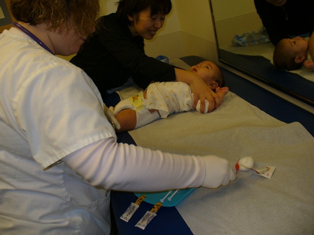 身長26インチと4分の1(66.7cm)、体重14ポンド8オンス(6.6kg)、頭42cmと相変わらず身長が高めで他は平均です。