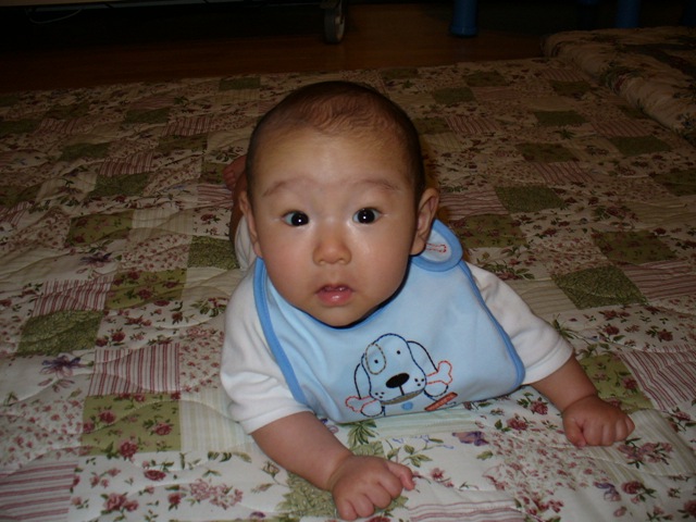 122日目 大分暖かくなってきた、そして相変わらずママはヨガなのでお昼はパパに付き合う。 前半は楽しかったが、後半眠かった、パパは僕を寝かす術をしらないので、ぐずって泣くだけである。 その後、外出してマレーシア料理のレストランに入る、これで今晩のミルクはマレー味かな? よだれかけの文字はハングリー、今日は天気はいいけどぐずりの多い一日でした。