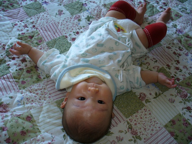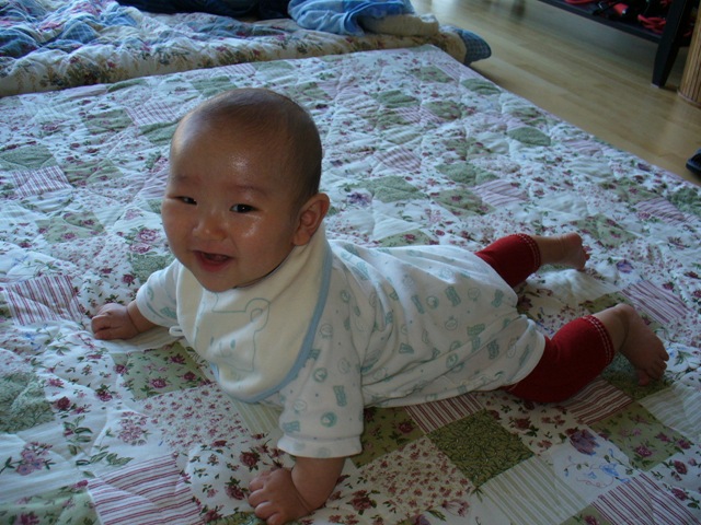 131日目 相変わらず天気がいい日が続く パパは大統領の日という祝日でようやく休めると思っていたが結局休みではなかったらしい、最近疲れが取れていないのであまり抱っこしてくれない困った。 HOLA! ママが新たなグッズを僕に装着したようだ はい ぐる ここまでは既に紹介済みだと思う 今回は、このおしり あがっているでしょ、腕立て中 運動の後の一服はやっぱり親指が一番だね。