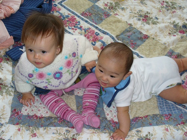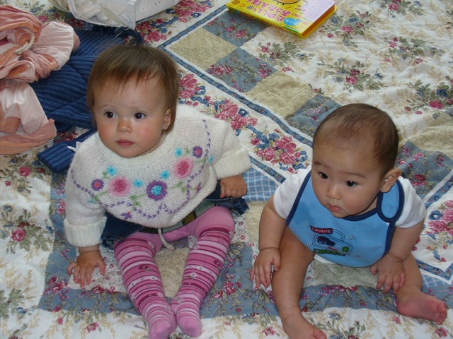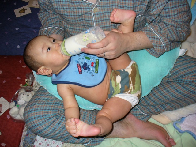 最後に、裸よだれかけV字開脚。