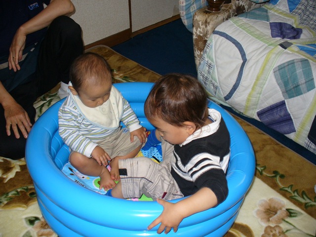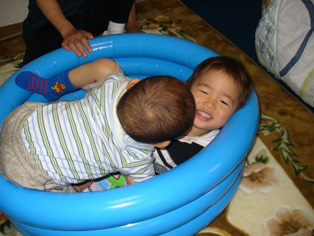 パパのばあばに、洋服と靴とプールを買ってもらいました。