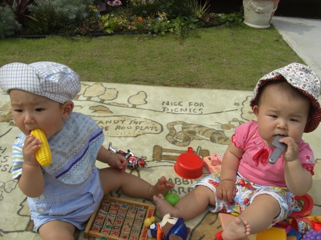 246日目 遥斗くんと一緒に、保育園へ遊びに行きました。 地域子育て支援センターとして、保育園の1室を解放してくれています。 ずっとハイハイしてあちこち歩き回りました。 車に乗ったら、すぐに寝てしまいました