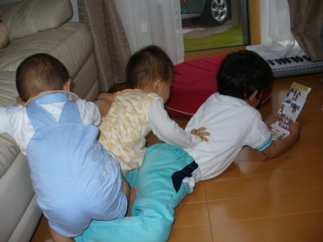 239日目 そうだ京都へ というのは隣の人です。 岐阜にあるママの大学時代の友達、美恵ちゃん家へいきました。 育美ちゃんもきてくれました。 音の出る絵本をもらいました、ありがとね。 るなちゃんは、1歳で、お兄ちゃんのゆうと君は5歳です。 ゆうと君は、夜も「海斗くんと遊ぶ~!」って言ってくれて、9時頃まで一緒に遊びました。