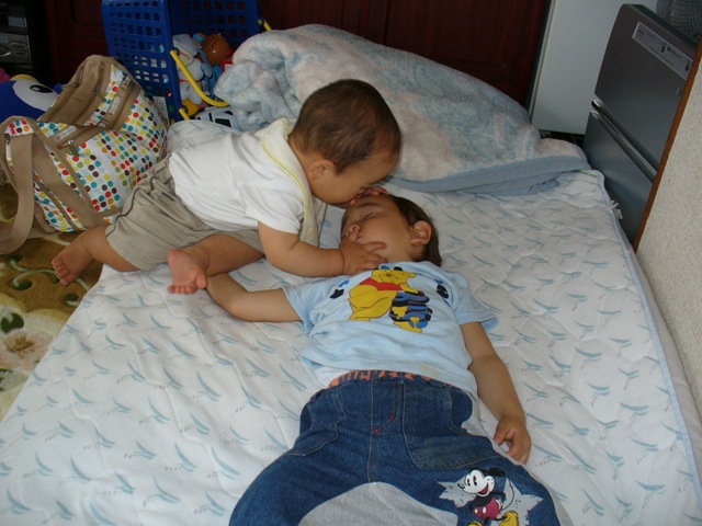 遥斗くんも来たのですが、来る途中で寝てしまっていました。