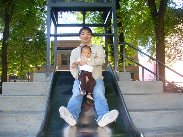 滑り台、パパはその体格ゆえ滑らないらしい。
