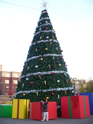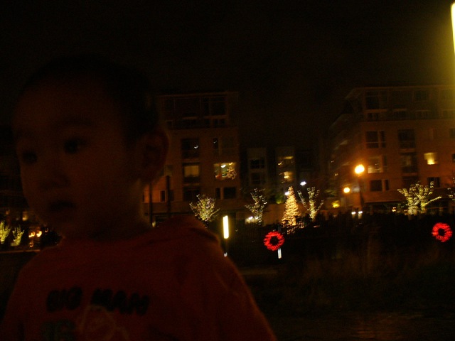 さて、おむかいさんもツリーを買って来たようです、そして電飾をつけて、その後倍増してつけなおして