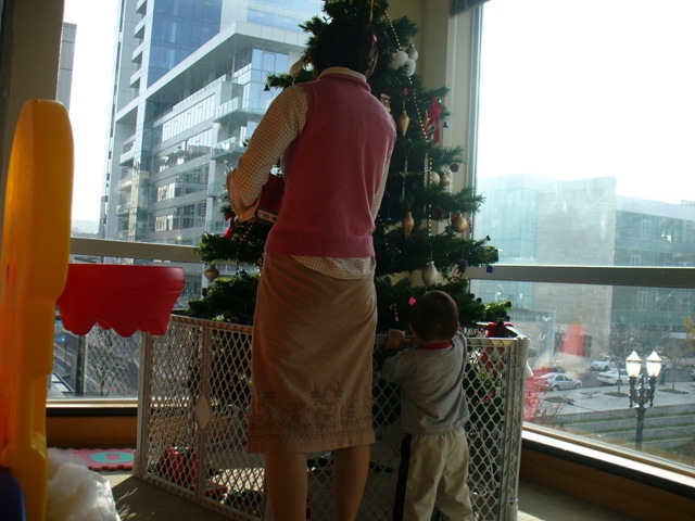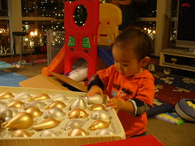 ツリーはようやく完成、最近お手伝いがすきで、見よう見まねでいろいろやってます。