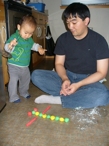 395日目 土曜日はマーケットで松茸ゲットです、でもブルーベリーはもうないです。 こっちよりマックの方がいいな。 パパは銀色の新しいのにして、これ頂戴。 粘度でパパがお手本を作りましたが、あまり関心なかったです。