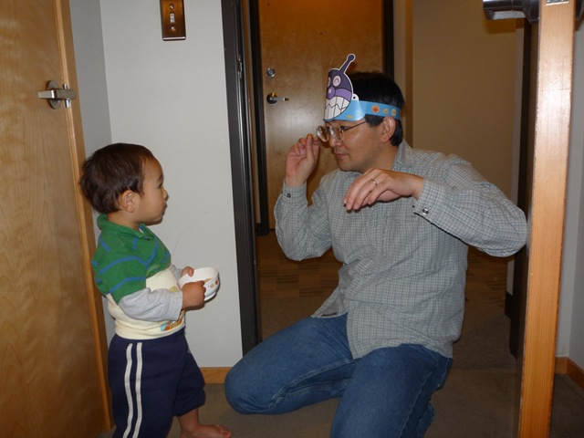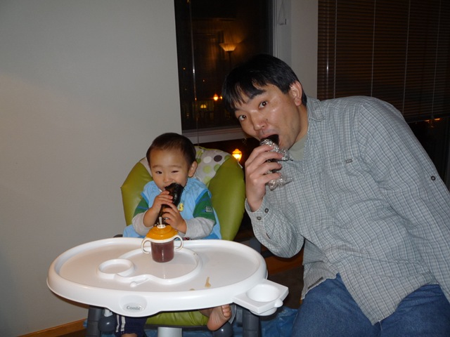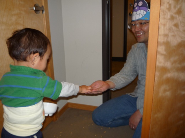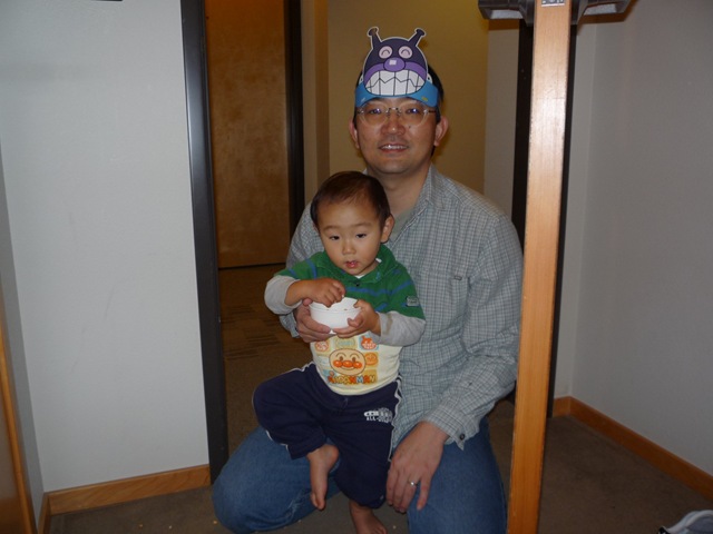 481日目 東北東に向かってがぶり ということで、節分です。 丁度かずきくんからプレゼントが届きました、アンパンマンの腹巻、パパはバイキンマンのおめんで鬼です。 ありがとね。 しかし、豆をぶつけろっていってもなぁ…。 やっぱり怖いから、服従 鬼に金棒