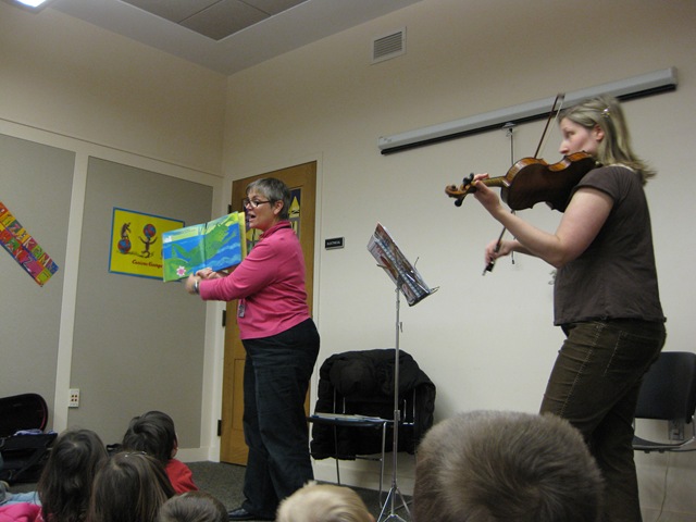 ライブラリーのストーリータイムにバイオリンの演奏です