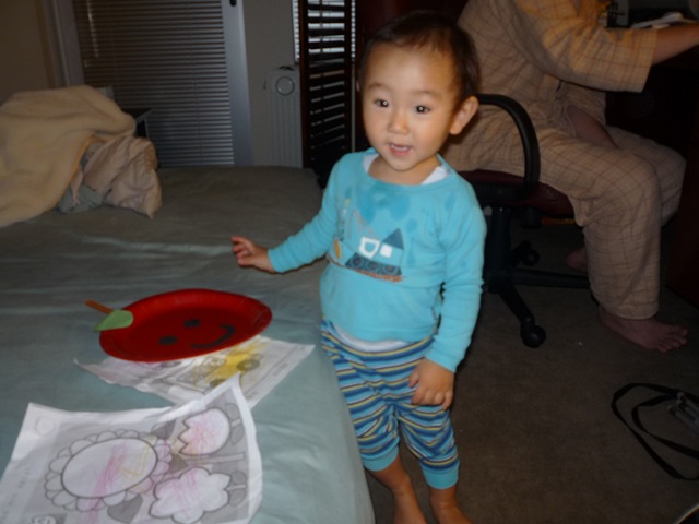 526日目 今日は午前中はひよこ保育園の日でした お絵かきとお皿でりんごのお顔を作ってきました、見てね パパはイベント後のブース解体作業でまだ肩が痛いらしい。 年だねと思ったら、さらに年上のダニーさんは靭帯を痛めて会社を休んだらしい。 ITの仕事って肉体労働だね、でもだっこね。