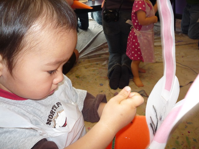 548日目 午前中はパパとOMSIへ しめは水遊びでびしょぬれに、パパは着替えのことは考えていませんでした。 午後はママとジンボリーへ、イースターのイベントに参加です。 タマゴ探しにお絵かき 工作です。
