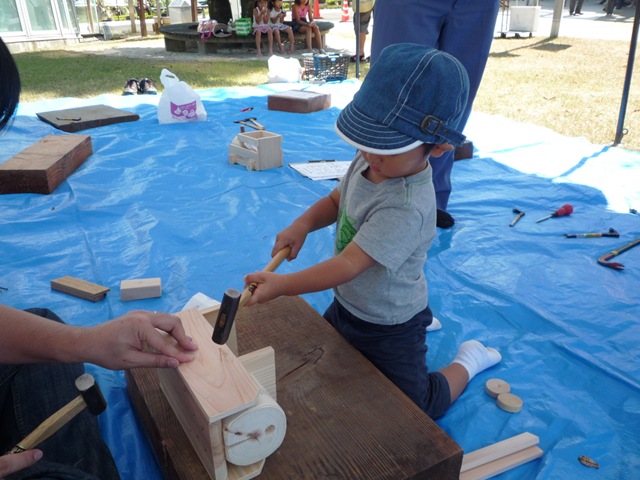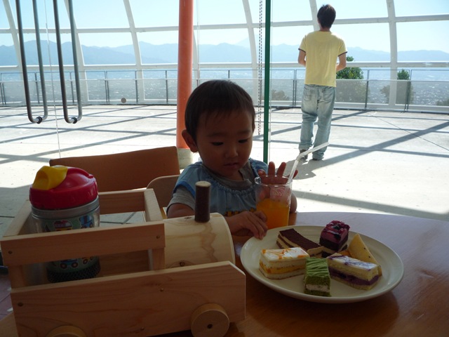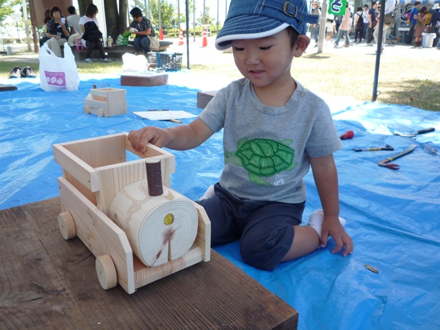 709日目 ぶどうの日、ぶどうの味覚体験無料にひかれて山梨県笛吹川フルーツパークにいってみた。 商売の方に熱心なせいか、味覚体験はなかなか出てこなかったが、何とか食べれました。 公園ではブドウよりもシュッシュポッポが気になったので、木工教室、汽車ぽっぽにチャレンジ トントンです トントンです ふぅ、完成? ランチはケーキでしめです。 おなかいっぱい、あとはシュッシュポッポと記念撮影して車で寝て帰りました。