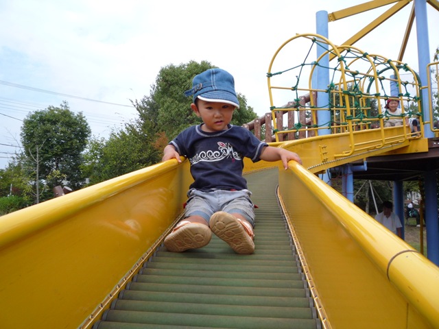 702日目 200キロ出していい? 再び新幹線公園にやってきました。 月に一度、ミニSLに乗れます、タダです、ありがとうございます。 大柄の男の人が乗車を断られていたのでパパはできるだけ小さくうずくまっていたらしいです。