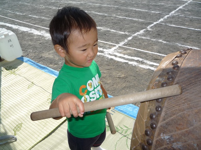 695日目 日曜日、地区の運動会に来てみました。 ママのお兄さんはかごで参加です。 さて暑い中並んで待った後、真ん中に来てみた。 よーいどんって何?、じぃじのところにいけって何故?ママは何故いかないの?一緒なら行くよ。 どうして、それもらったの? もらえた、最後だったようだ。 お菓子なら持ってきてくれればいいのにね。 まだ若いので、単純にたたくこれの方が楽しいです。
