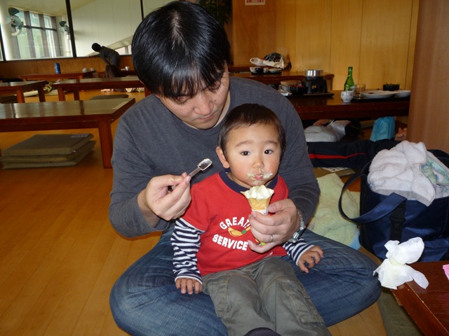 お昼は川根の温泉へ、久々のプールの後、しめはソフトクリームです。
