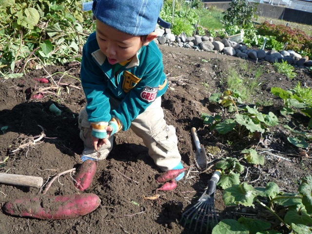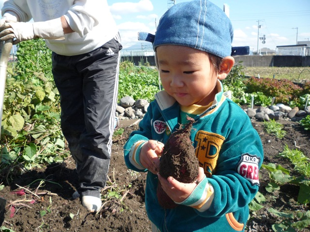 754日目 風邪が治らず、保育園にも行けず、ママは研斗に、外は寒いし、とストレス増加中でしたが、ちょっと暖かくなって、風邪も治ってきました。 ということで、延び延びになっていたいも掘りです。 おりゃ よいっしょ んー、とれたて。