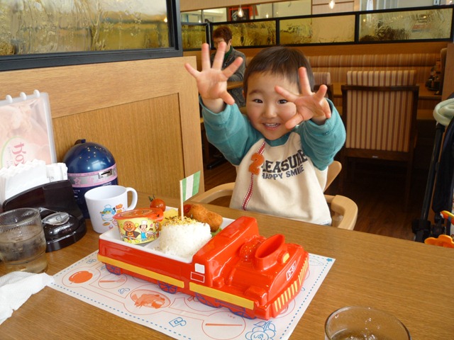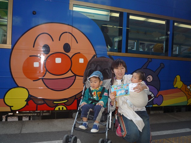 アンパンマン列車に乗るために、パパとママとばぁばも連れて、はるばるやってきました。