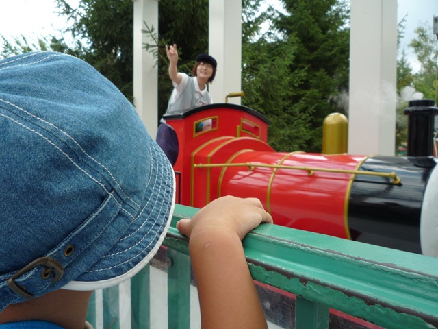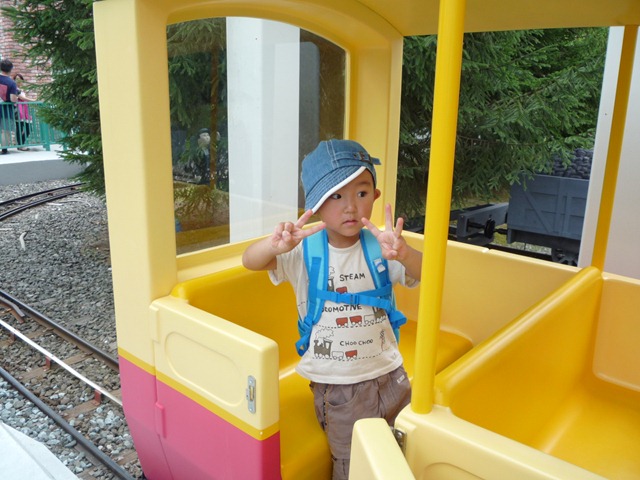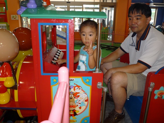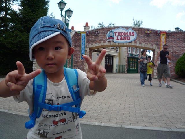 1045日目 前日、海に行ったが波の怖さで退散しプールへとなった。 そして、次の日はパパに頼んでFUJIQにきてみた トーマスランド、もちろんここまでパパは肩車です。 ジェームズは先頭に座れるとボタンが押せてラッキーらしい しかし、最後尾 これも最後、並んでいるのでしょうがない、 その後お昼を食べた後、3Dシアターに行き飽きたので帰りました。