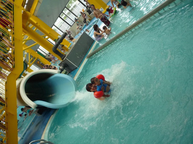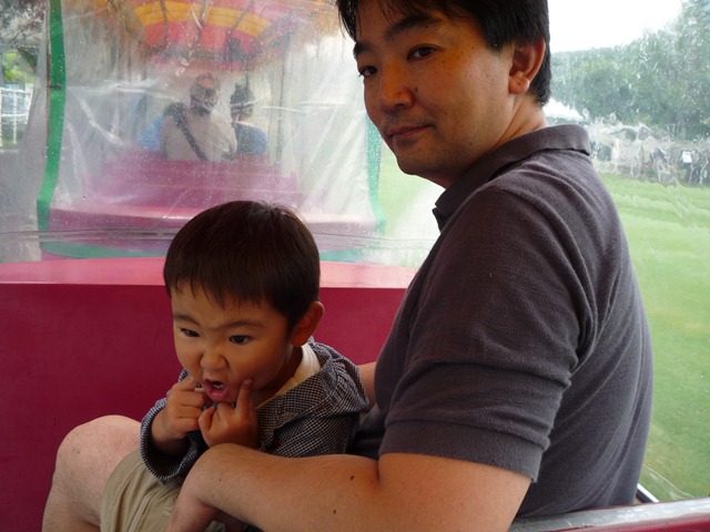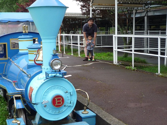 1035日目 さて、一晩開けて2日目 いろいろ予定していましたけど、台風が接近で大荒れです。 屋内プールにしてみました ウォータースライダーもやってみました 午後、雨も止んだので、お目当てだったシュッシュッぽっぽへしかし、怖くなって近寄れませんでした。 なんでかって、眠かったから。 発射したらすぐねんねしました。