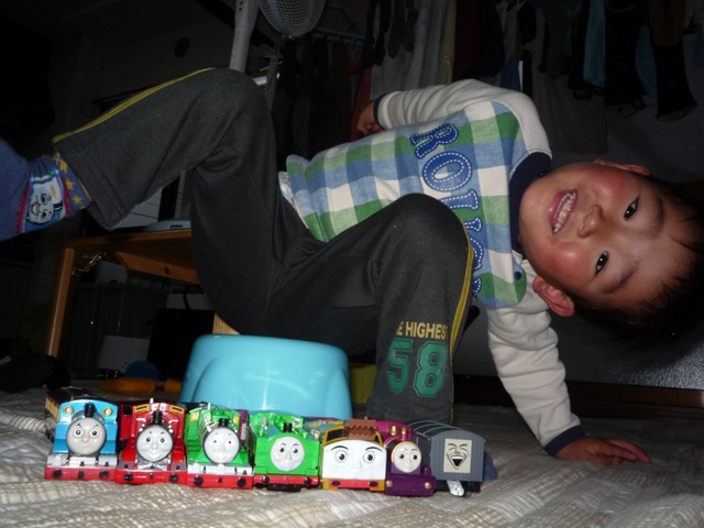 プラレールは静岡の俊太君のお古がいっぱいあって大半ですが、名前指定で1か月以上ほしがっているとパパは悩んで買ってくるようです。