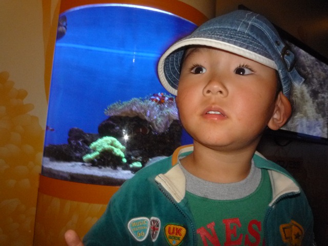 しかし、暗い水槽だめ、うつぼだめ、クジラのはく製だめ、お魚ロボットも興味なし。