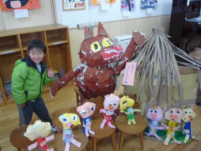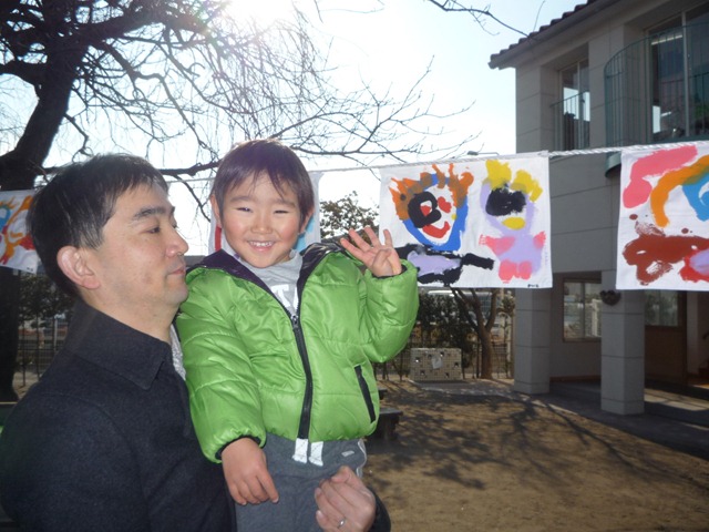 幼稚園で作品展みんなを呼びました。