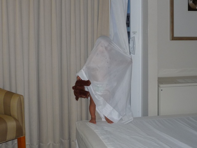2日目ホテル、カーテンでいないいないばー
