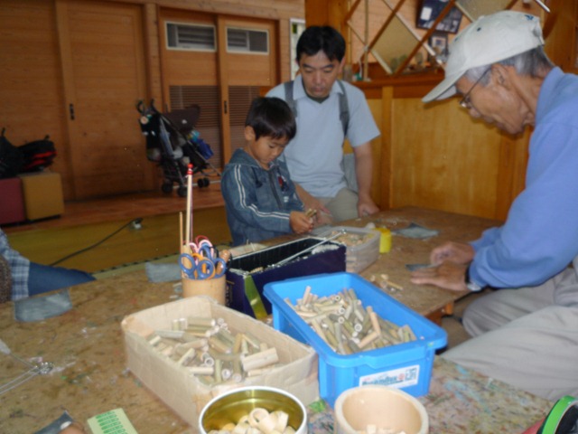 竹細工で笛を作るということでしたが、アロンアルファで接着なのでパパの出番でした。